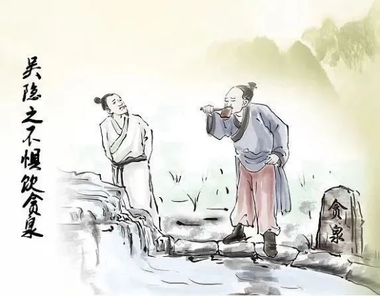 晋代人吴隐之任广州太守,在广州城外,见一池泉水名“贪泉” 。当地传说饮了贪泉之水,便会贪婪成性。他不信这些,照饮不误,饮后还写了一首诗:“古人云此水,一歃怀千金。试使夷齐饮,终当不易心。”他在任期间,果然廉洁自律,坚持了自己的操守。